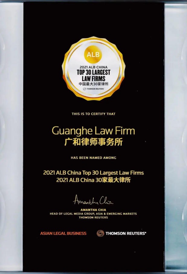 在法律行业媒体与权威机构的各类榜单中,广和律师事务所凭借深厚的专业实力与瞩目的发展态势,屡获殊荣。多年来,广和持续受到亚洲法律杂志(ALB)、钱伯斯(Chambers)、Legal500、Legalband、《商法》等国内外顶尖法律评级机构的高度认可。先后被评为“中国十大规模律师事务所”“中国十大品牌律师事务所”“中国发展最迅速的十家律师事务所”“2021年中国律所品牌价值100强榜单”(第八位)“中国最大30家律所”,ALB和Chambers年度中国地区及亚太“公司/商事、房地产与建设工程领域领先律师事务所”荣誉称号等。