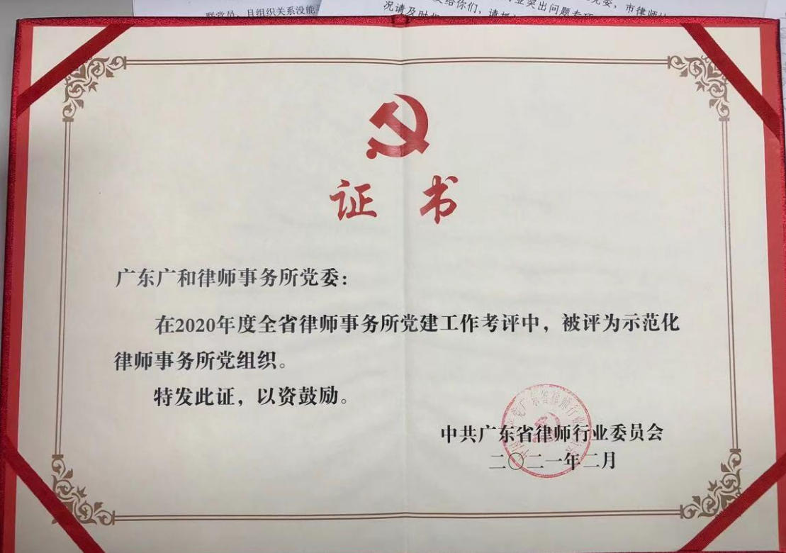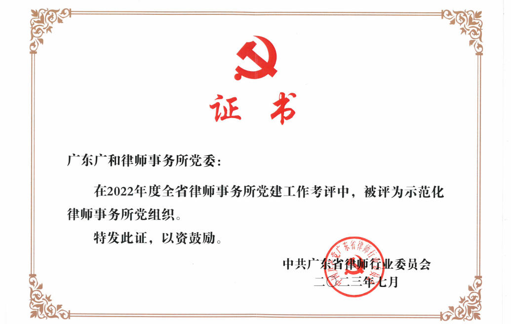 广和党委被评为“广东省示范化律师事务所党组织